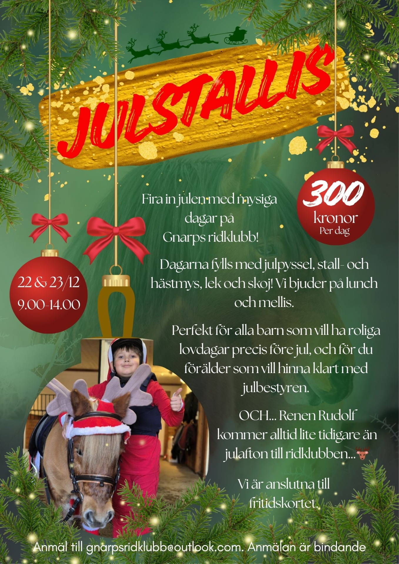 Kom på julstallis och ha roligt med vänner. Här myser, pysslar och umgås vi i stressfri julstallmiljö. Ingen hästvana krävs.