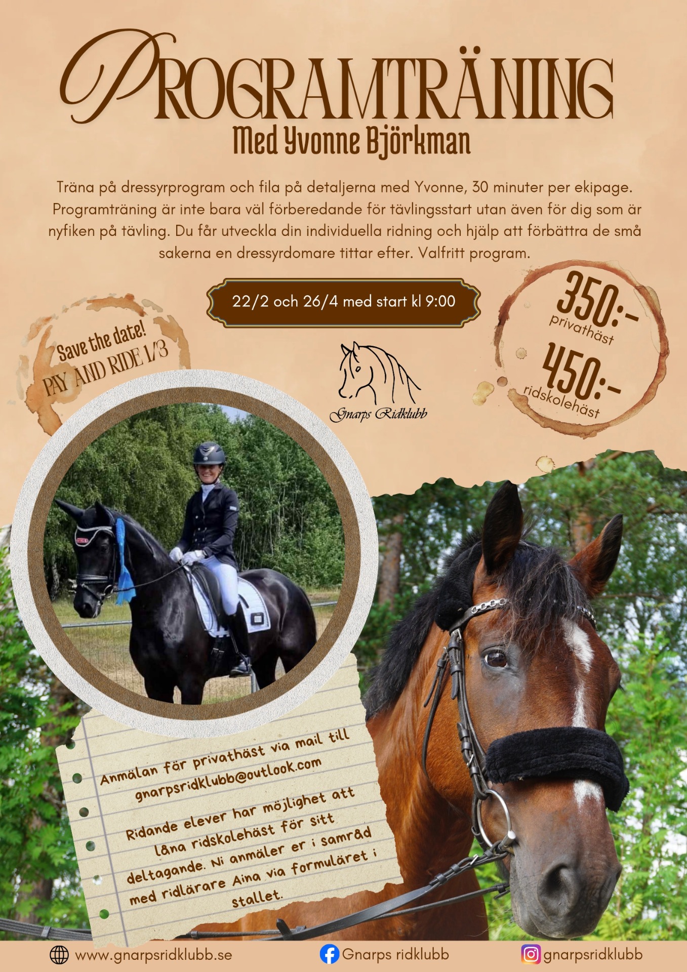 Anmälan för privathäst via mail till gnarpsridklubb@outlook.com